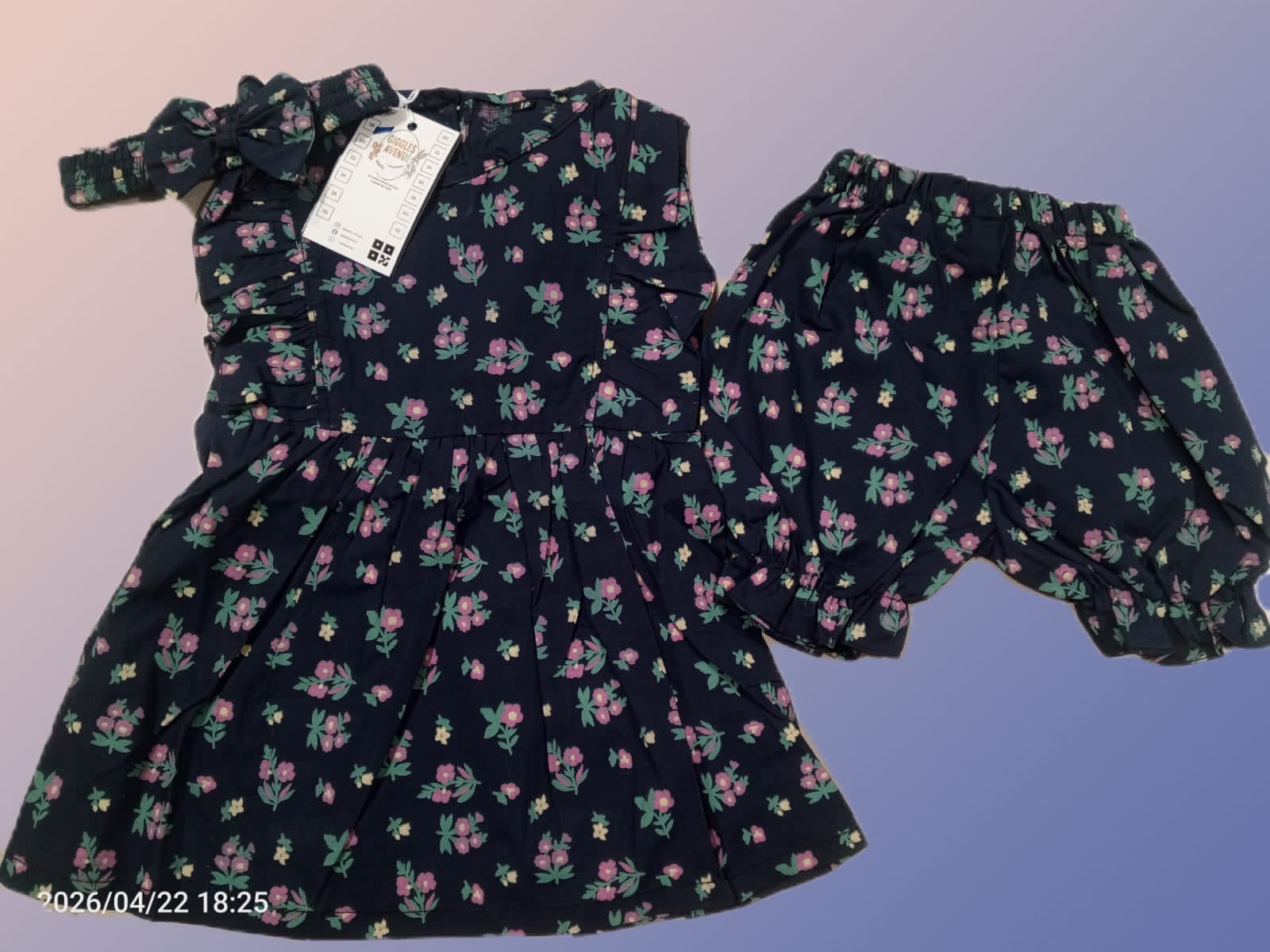 Pure Lawn Cotton Blue Frock Set for your little princess(frock+head band+ panty)